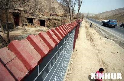 甘肅永靖豎起兩公里文化墻遮掩農(nóng)村貧困,當?shù)卣疄榱嗣孀犹匾庑蘖诉@面遮羞墻。